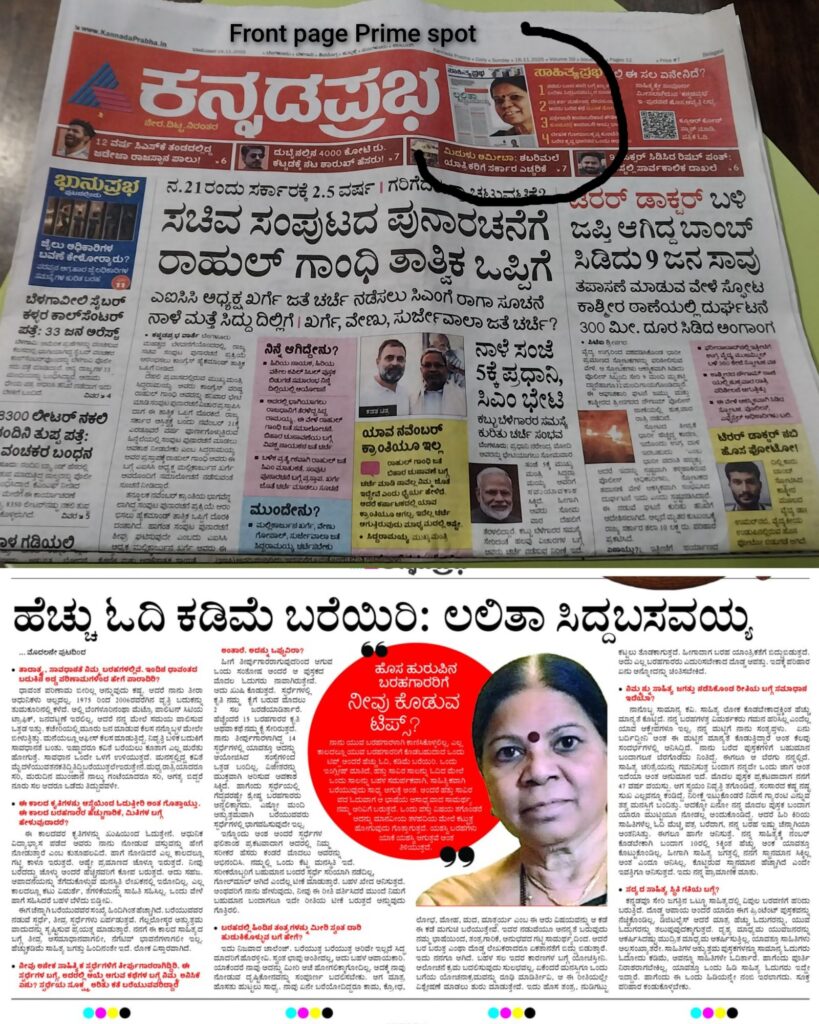 Interview published in Kannada Prabha – a Leading regional News paper of The Indian Express Group. Nov 16th 2025